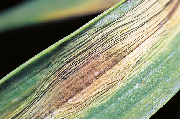 - و قد تتجمع هذة البقع و تسبب ذبول الأنسجة البعيدة وجفاف الأوراق . بعد 3-4 أسابيع تتحول الأوراق للإصفرار والانهيار. في ظل ظروف غير المناسبة لتطور المرض قد تبقى الأعراض في صورة البقع البيضاء الصغيرة