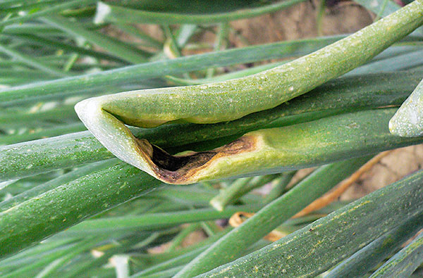 فى الإصابة الشديدة تتعرض الشماريخ الزهرية للكسر فى منطقة الإصابة مما يؤدى إلى قلة أو عدم تكوين البذور ونقص المحصول وكذلك نقص محصول الابصال فى حالة البصل الفتيل
